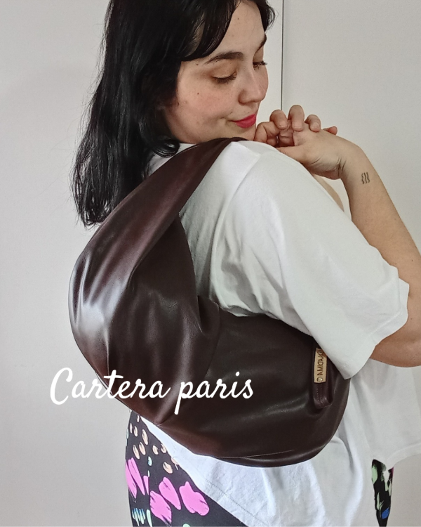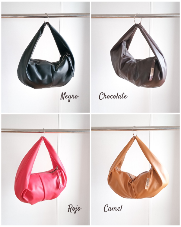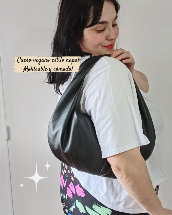 Cartera hobo tipo totebag, espacioso, tamaño mediano. Realizado en cuero vegano.
